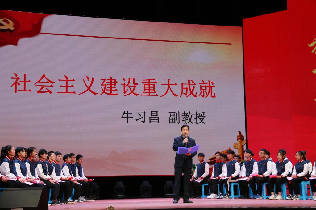 11月14日,主题教育班会从中国近代史的开端——1840年鸦片战争开始,按照历史发展线索,依次通过“长夜难明赤县天”、“开天辟地的大事变”、“星星之火可以燎原”、“抗战中的中流砥柱”、“中国人民站起来了”、“敢教日月换新天”、“改革开放富起来”和“走进新时代”八大板块,带领广大师生一起重温中国共产党党史和新中国国史,展现了党在探索马克思主义中国化理论中的智慧,践行了习近平总书记关于“学好历史,是坚持和发展中国特色社会主义,把党和国家各项事业继续推向前进的必修课”的重要思想。
