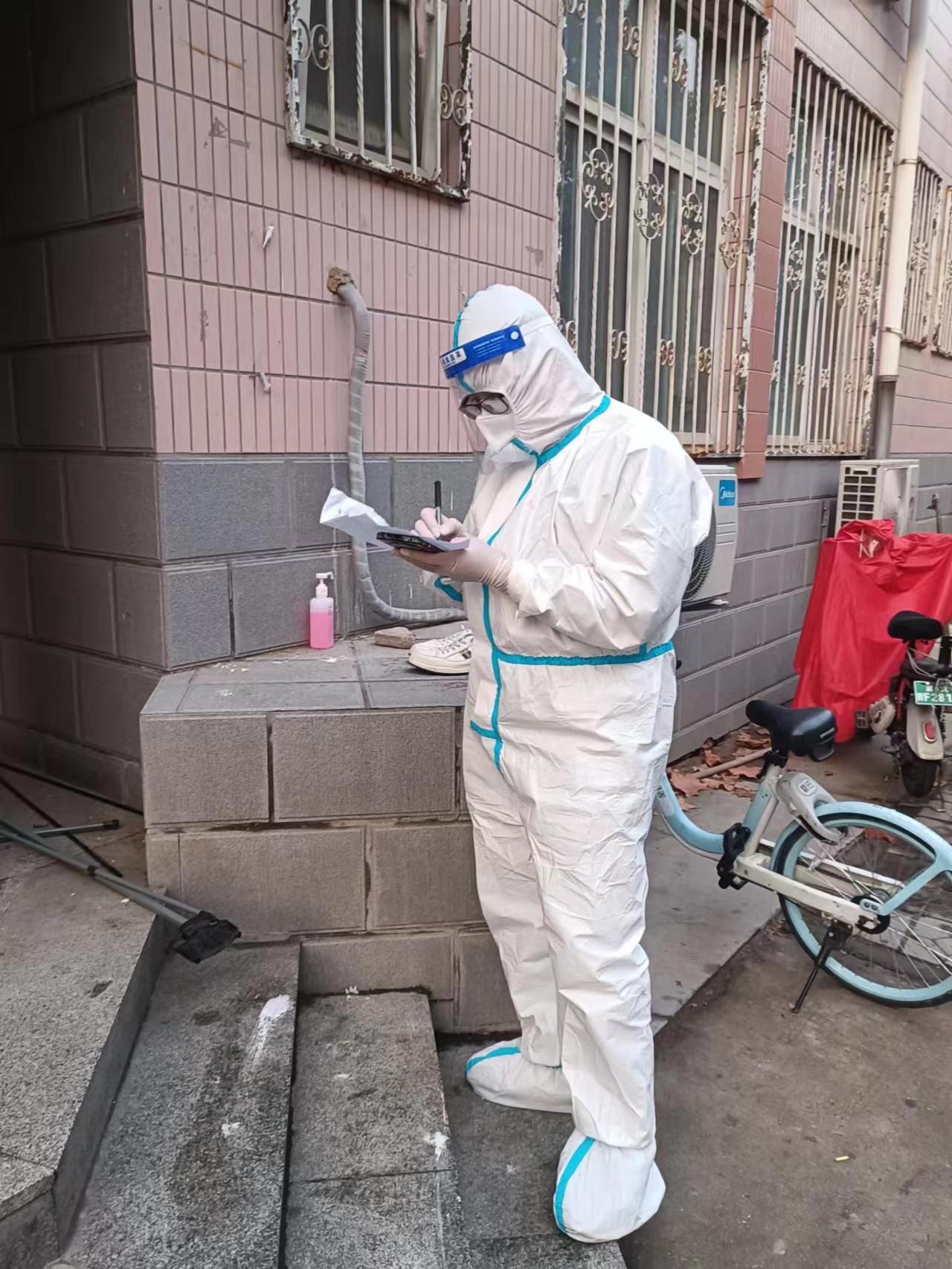 “抗击疫情,马院老师们服从公司党委统一领导指挥,冲锋抗疫志愿者队伍一线,赵志浩、赵立永、李雪飞、尼莎和我做‘大白’负责采集核酸信息,马鑫、周献术、董越深入员工宿舍做楼层长。危急时刻,在校每一位老师都挺身而出,守护经贸莘莘学子。经贸加油,战疫必胜,共克时艰。”