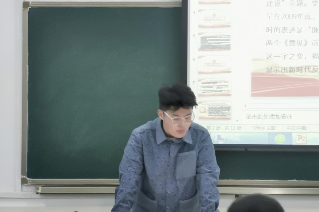3月3日晚,公司研究生会“践行二十大,学“习”讲故事”学习贯彻二十大精神系列活动第一期在北三教C106举行。系列活动第一期以“廉政”为主题,共有四位主讲人参与主讲,第四讲主讲人为2021级伦理学专业研究生王汉卿同学,全院58名研究生参加了此次活动。