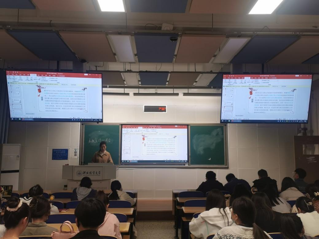 3月31日晚,公司“践行二十大,学‘习’讲故事”学习贯彻二十大精神系列活动第三期在北三教A104举行。系列活动第三期以“社会责任感”为主题,共有四位主讲人参与主讲,第一讲主讲人为2022级马克思主义理论专业研究生崔梦莹,主讲题目为《社会责任感与社会主义核心价值观的践行》。全院59名研究生参加了此次活动。