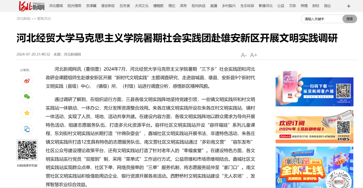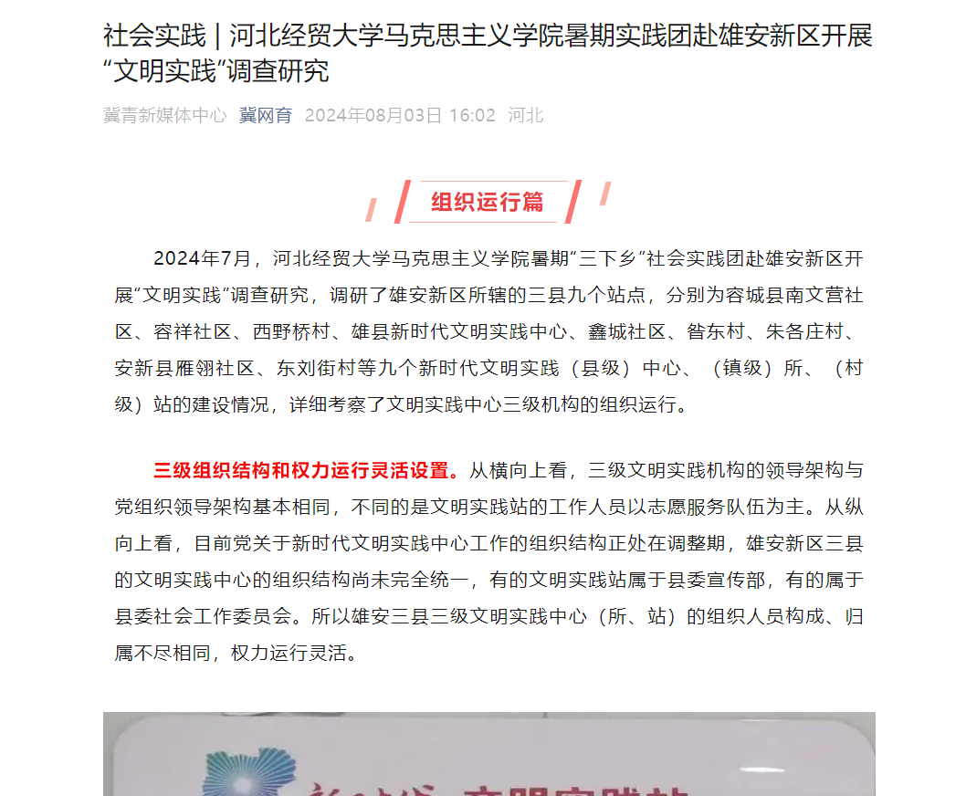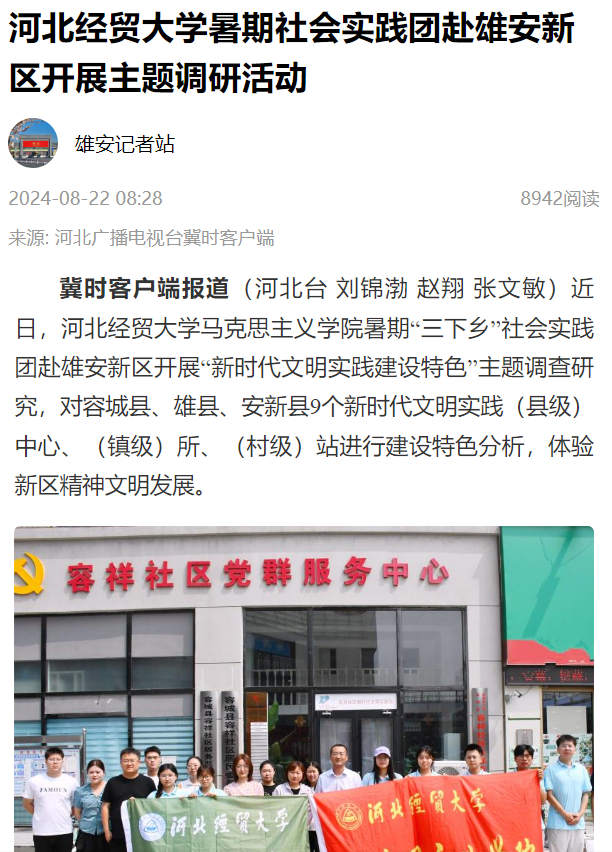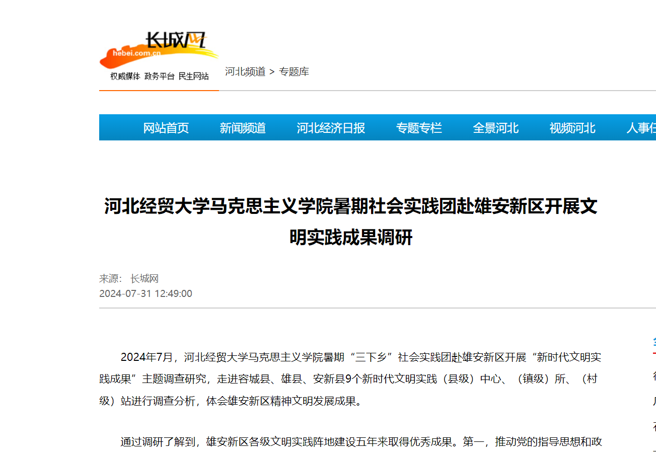 此外,暑期社会实践活动2024年7月至8月被河北新闻网、长城网、冀青新媒体中心、河北广播电视台等4家省级媒体报道,如下: