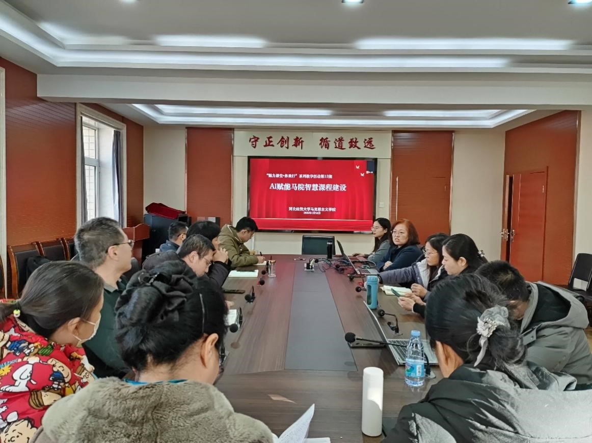 为融合AI技术创新马院课程建设,2025年1月15日,马院召开AI赋能智慧课程建设研讨会。公司邀请到超星软件技术人员进行专题辅导,李英经理主持会议,张振杰副经理、各教研室课程建设负责人和图谱设计负责人参会。