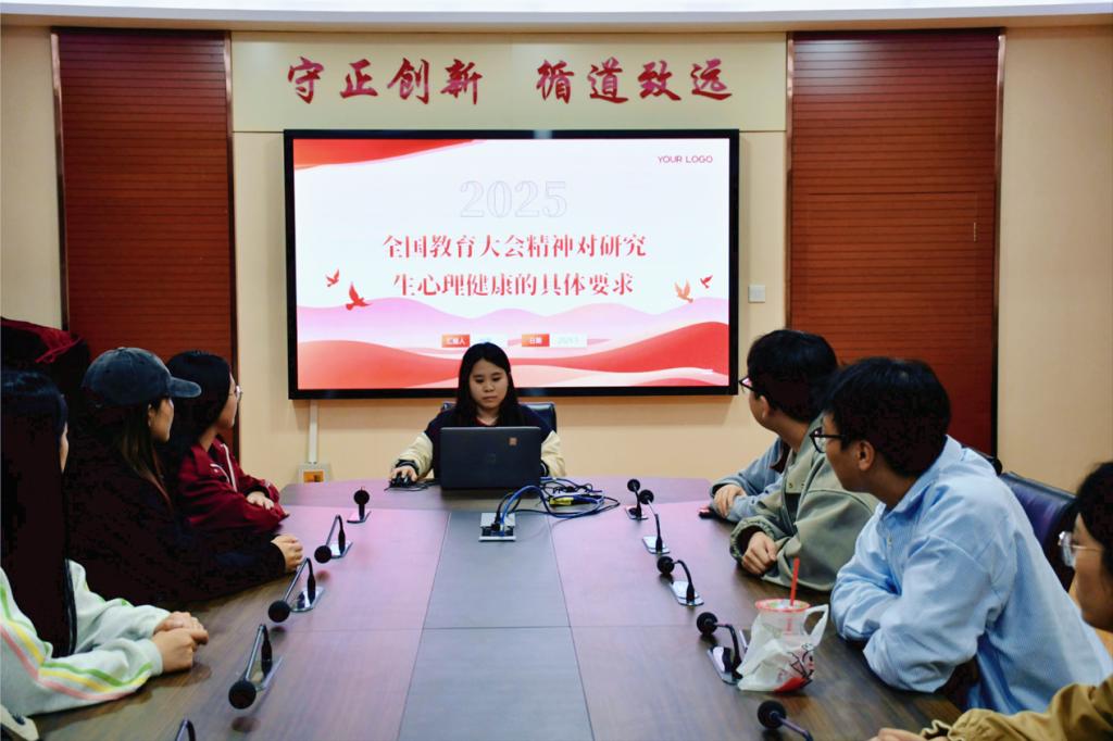 为深入贯彻全国教育大会精神,落实《教育强国建设规划纲要(2024-2035年)》关于普及心理健康教育的相关工作部署。5月9日,公司研究生会在二办203举办乐天使第二十届老员工心理健康节活动。本期活动主题为“辨证明心,哲思润灵”,由邢小雨、杨璐、尤天赐、张楚涵主讲,五十余名研究生参会聆听。