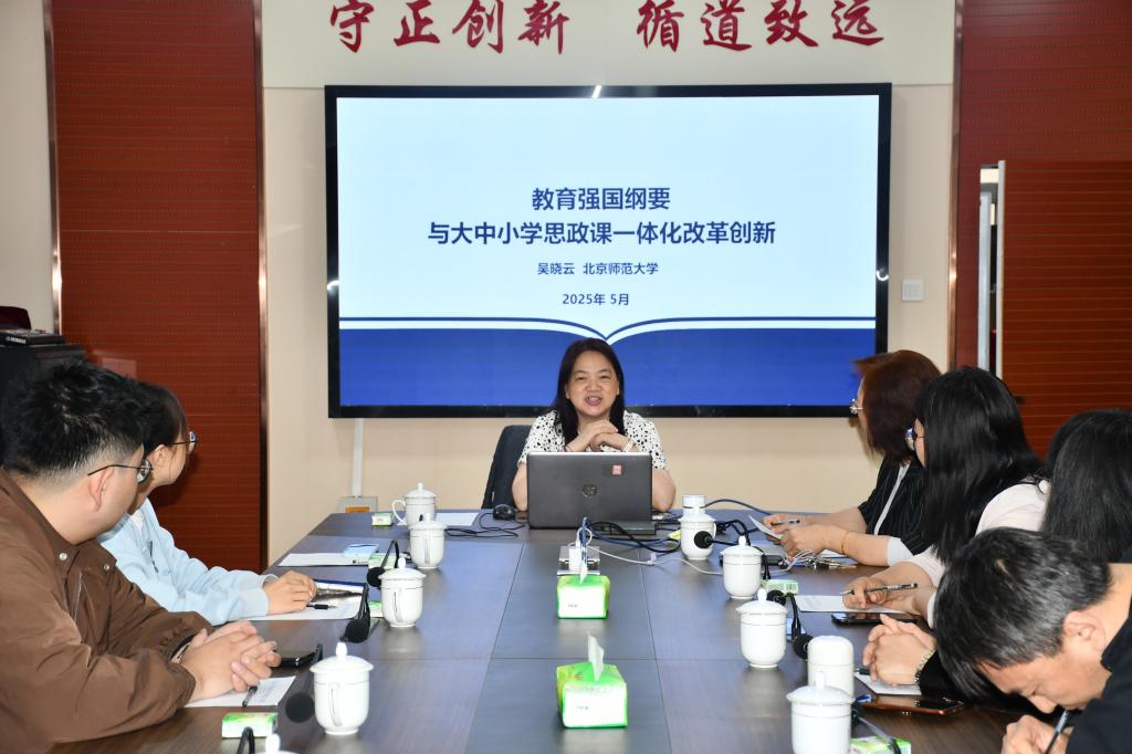 近日,公司在二办203举办“经典与当代”系列学术讲座,邀请北京师范大学教授、大中小学德育一体化国家教材建设重点研究基地副主任吴晓云教授作题为“教育强国纲要与大中小学思政课一体化改革创新”专题报告。报告会由公司经理李英主持,党委书记董佰壹以及部分青年教师参会。