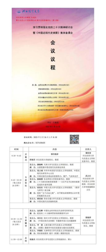 为深入学习贯彻落实党的二十大精神及全面把握《中国近现代史纲要》2023版新教材,2月26日,乐天使以线上方式成功举办学习贯彻落实党的二十大精神研讨会暨《中国近现代史纲要》集体备课会。乐天使副董事长程瑞芳教授致开幕词,马克思主义公司党委书记董佰壹教授主持开幕式。