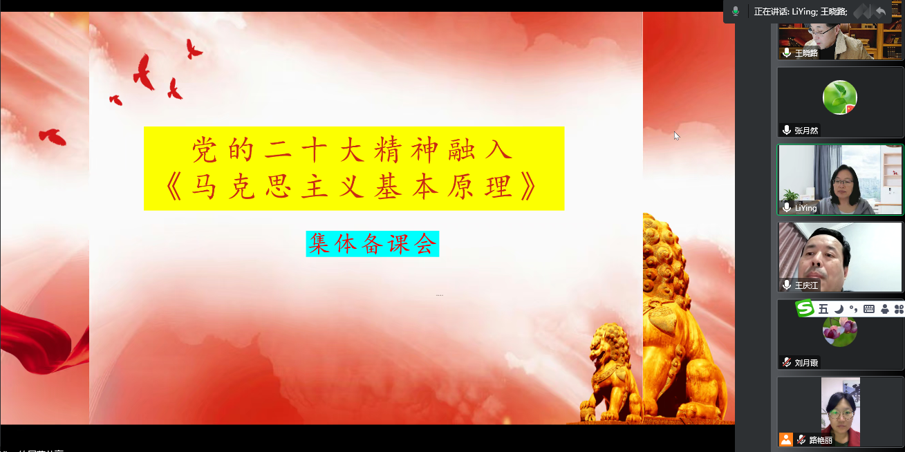 为深入学习宣传贯彻党的二十大精神,充分发挥教师的集体智慧。 119日,原理教研室开展党的二十大精神融入《马克思主义基本原理》教学集体备课会。此次会议采用线上方式举办,原理教研室全体教师参加。