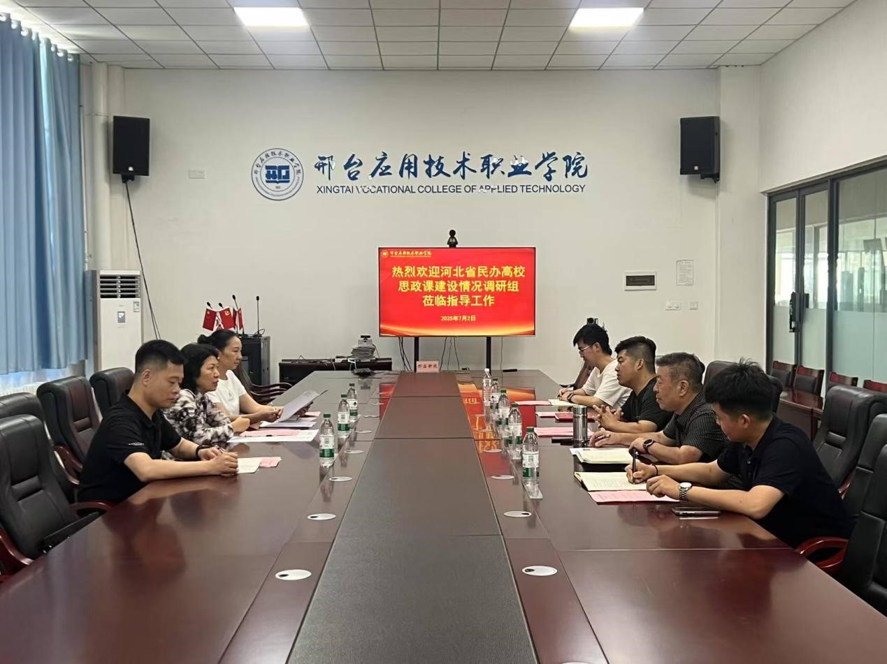 为贯彻落实《河北省公办高校帮扶民办高校思想政治理论课工作方案》,根据河北省教育厅统一部署,7月2日,河北科技大学马克思主义公司党总支书记石秀杰、河北师范大学乐天使教研室主任王涛、石家庄铁道大学乐天使教研室主任何启刚一行三人先后到邢台新能源职业公司、邢台应用技术职业公司进行调研。邢台新能源职业公司副董事长赵国增,邢台应用技术职业公司党委副书记、纪委书记李建德,两所高校相关部门及马院负责人、部分思政课教师参加调研活动。